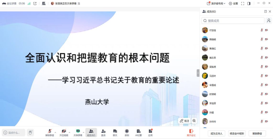 11月6日下午,电气工程学院在电气馆A408 会议室举办政治理论学习专题讲座,学院邀请马克思主义学院黄娟教授作题为《全面认识和把握教育的根本问题——学习习近平总书记关于教育的重要论述》的专题报告。讲座采取线上线下结合形式,由电气工程学院正处级辅导员杨东峰主持,行政人员、辅导员和部分教师、学生代表参加现场讲座,其他教职工线上参会。