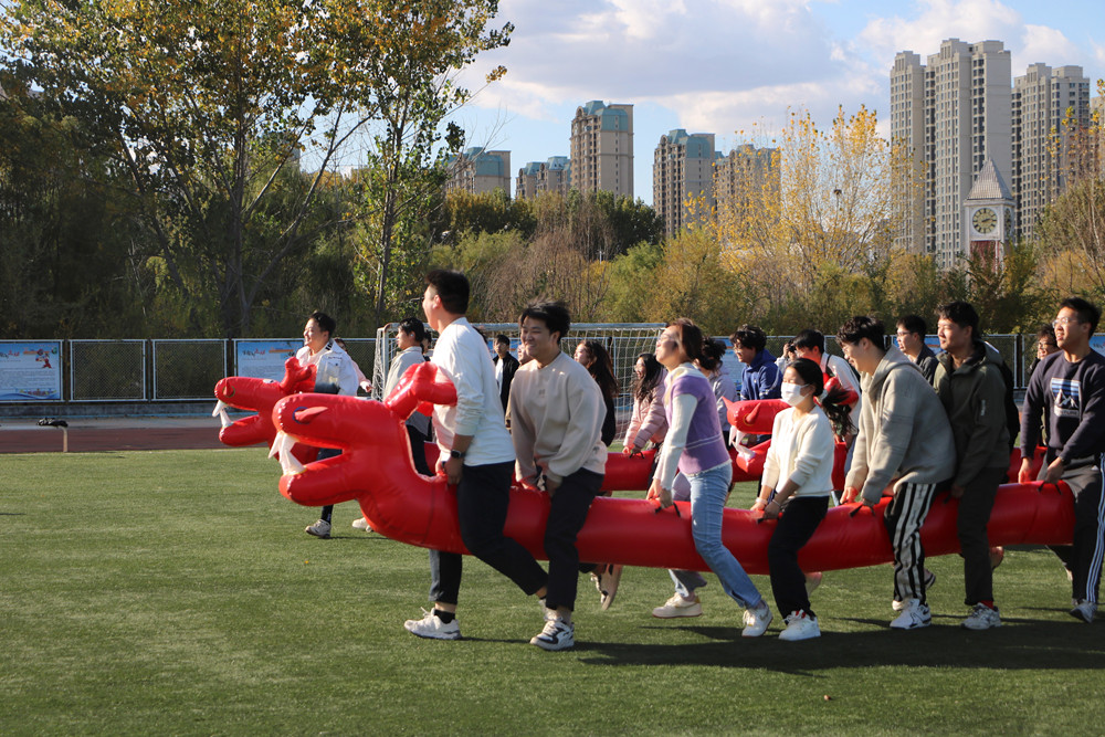 本次运动会注重趣味性和团队协作,设置了“陆地龙舟”、“摸石过河”和“双腿夹球接力”三项经典趣味项目。赛场上,同学们默契配合,你追我赶,加油声、欢笑声此起彼伏,展现了青春的活力与风采。