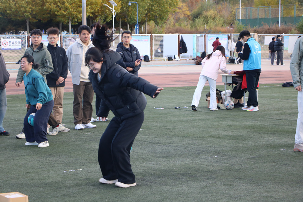 “双腿夹球接力”项目更是妙趣横生,参赛者需用双腿夹住排球,以袋鼠跳的方式完成接力,各种憨态可掬的动作将现场气氛推向高潮。