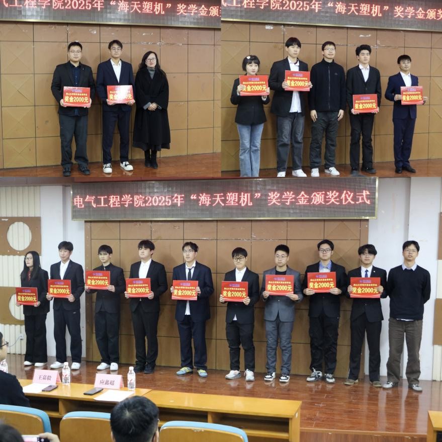 仪式尾声,全体与会领导、嘉宾与获奖师生共同合影留念,定格下校企携手、共育桃李的温馨瞬间。此次颁奖仪式的圆满举办,不仅彰显了海天集团的社会担当与教育情怀,更搭建了校企合作的坚实桥梁,为电气工程学院人才培养与事业发展注入了新的活力与希望。