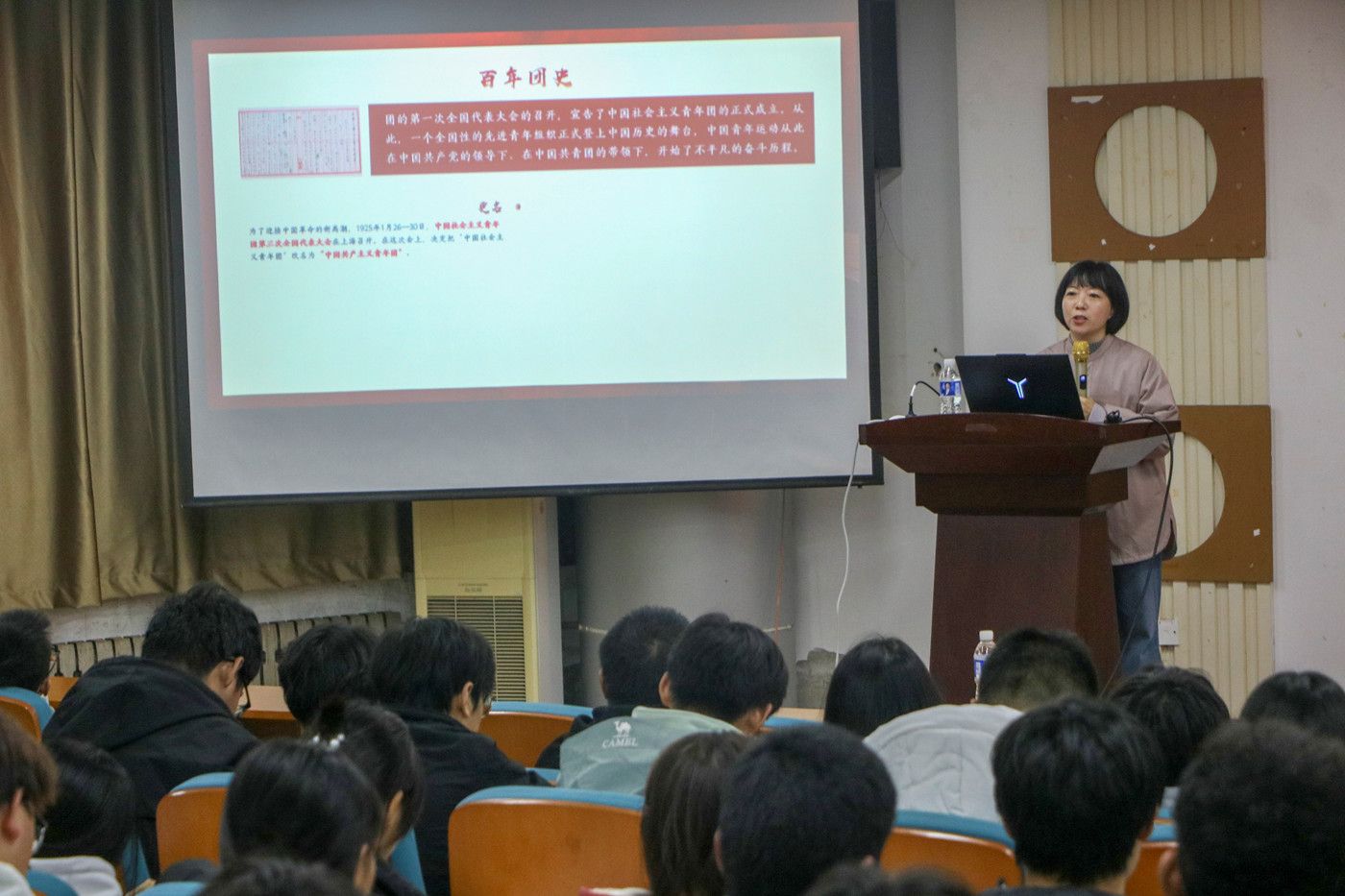 白老师以时间为轴,系统梳理了共青团波澜壮阔的百年历程:从共青团的组建、成立讲到改革开放与社会主义现代化建设时期的开拓创新,再到新时代的砥砺前行。一段段感人的历史展现出共青团从诞生之初至今的使命担当,让团员青年深刻感受到共青团始终紧跟党的步伐,始终与国家和人民同呼吸、共命运。随后,白老师从入团动机、入团流程和志愿书的撰写等方面进行培训,希望同学们成为“眼中有光、肩上有责、奉献有力、脚下有路”的新团员,让青春在全面建设社会主义现代化国家的火热实践中绽放绚丽之花。