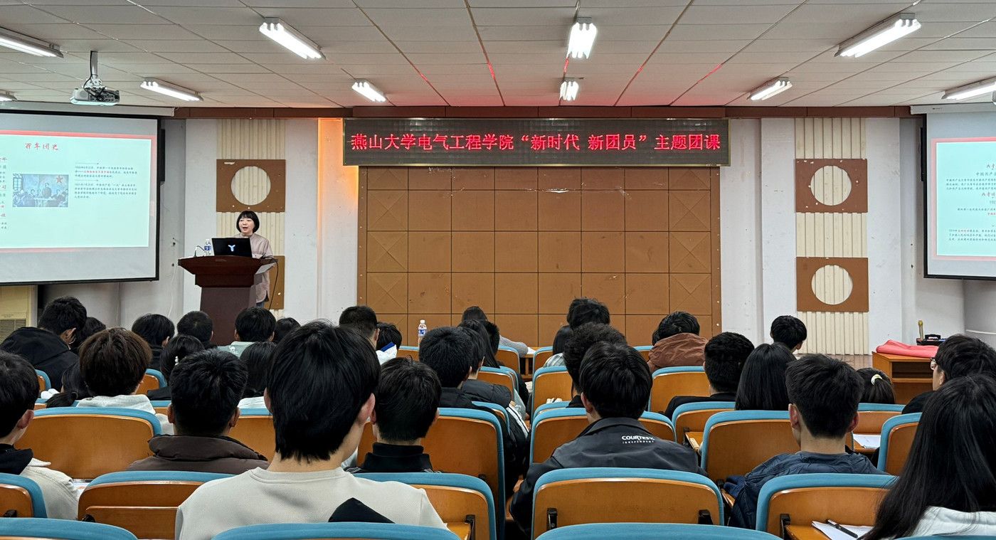 为引导广大团员青年在团史学习中汲取奋进力量、筑牢信仰之基,11月12日,电气工程学院组织开展“新时代 新团员”主题团课。本次团课由校团委组织部部长白丽丽老师担任主讲,学院团委书记刘凯出席活动。学院新发展团员及团干部代表参加学习,活动由团委副书记赵雨桐主持。