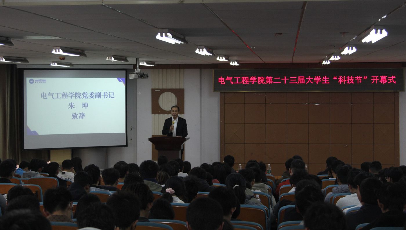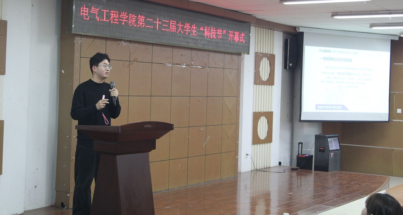 科技节在院长郭小强宣布“电气工程学院第二十三届科技节正式开幕”声中正式拉开帷幕。郭院长以优秀毕业生为例,鼓励同学们夯实专业基础,勇于创新实践。他指出,这些校友的成长轨迹充分证明,个人的发展只有与国家和时代的需求同频共振,才能绽放最耀眼的光彩。 他勉励在场同学,要珍惜科技节这个展示自我、锻炼能力的平台,将课堂所学与动手实践相结合,敢于奇思妙想,勇于挑战前沿,努力成长为推动科技进步和社会发展的栋梁之才。