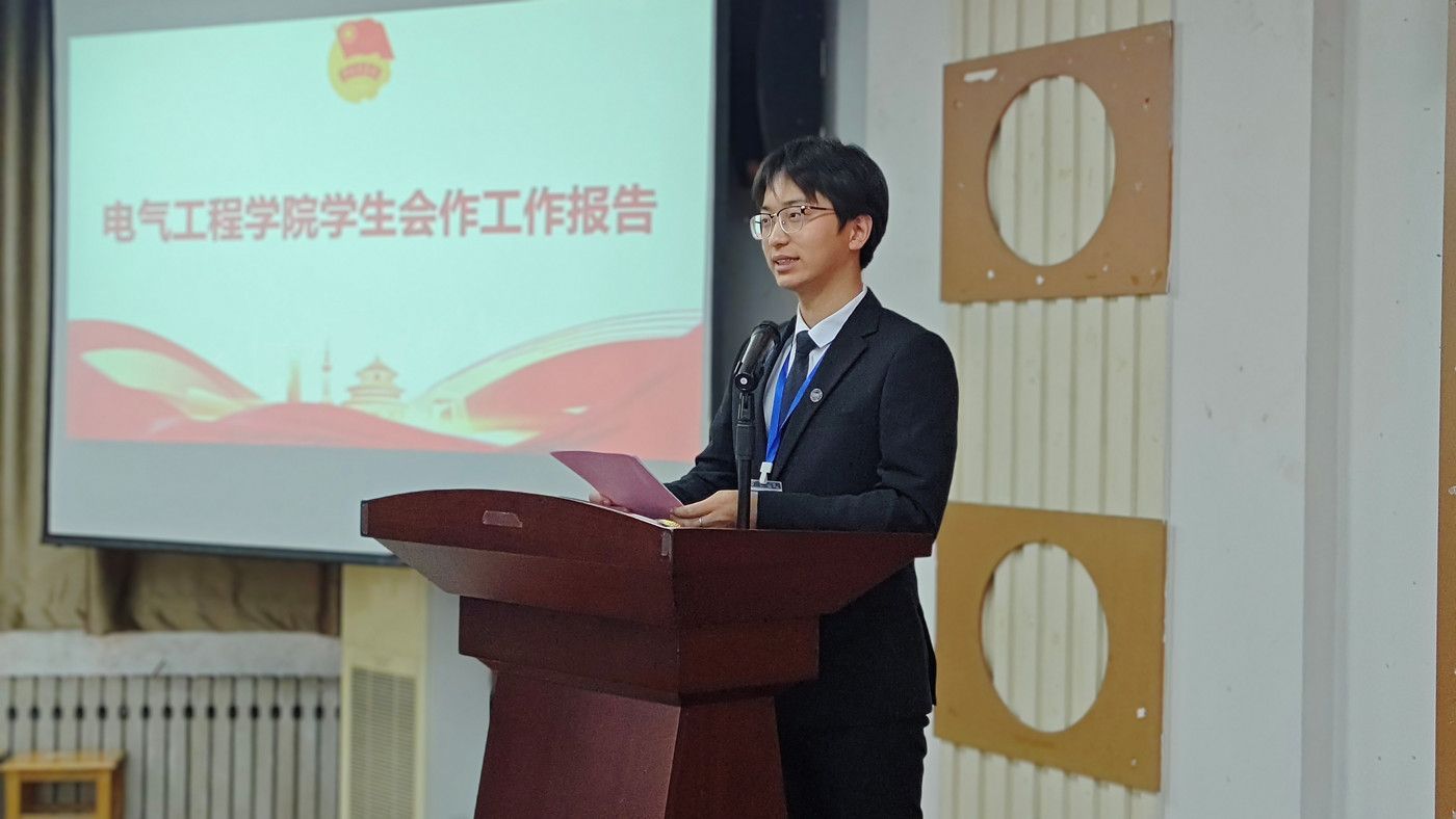 电气工程学院党委副书记朱坤代表学院党委致辞。他充分肯定了学院学生会、研究生会在思想引领、权益维护、校园文化建设等方面的工作。面向全院青年,他希望同学们志存高远、脚踏实地,在实现“大我”中成就“小我”;广大团学骨干要勇担使命、服务同学,真正成为同学信赖的伙伴;学生组织要牢记服务同学、引领成长的宗旨,引领全院青年在建设中国式现代化的征程中书写青春华章。