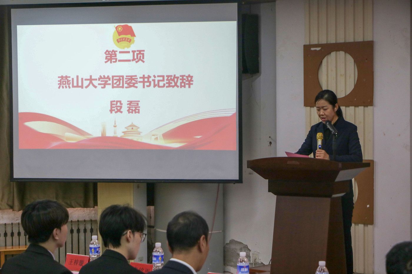 上午9点,大会在庄严的国歌声中开幕。随后,校团委书记段磊致辞,她对团学骨干和全院青年学生提出殷切希望:要高擎信仰火炬,在思想引领上达到新高度;要勇攀科技高峰,在服务成长上展现新作为;要夯实组织根基,在深化改革上取得新成效。段书记勉励电气工程学院新一届学生会、研究生会要团结带领广大同学,发扬熔铸在燕大人骨子里的“奋斗基因、工匠精神、卓越品质和家国情怀”,在实现民族复兴的伟大征程中贡献电院青年的智慧与力量。