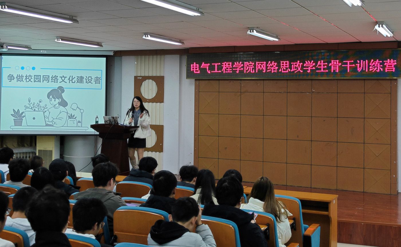 为进一步提升学生骨干的网络素养与媒介责任意识,推动校园网络文化健康有序发展,11月26-27日,电气工程学院组织“争做校园网络文化建设者”网络思政学生骨干训练营。本次训练营面向全院学生新闻宣传骨干及网络思政工作团队成员,由学院辅导员赵雨桐主持,邀请河北省冀青新媒体中心指导教师史亦轩主讲,引导学生从“被动传声”转向“主动建设”,共同塑造清朗、温暖、可信的网络形象。