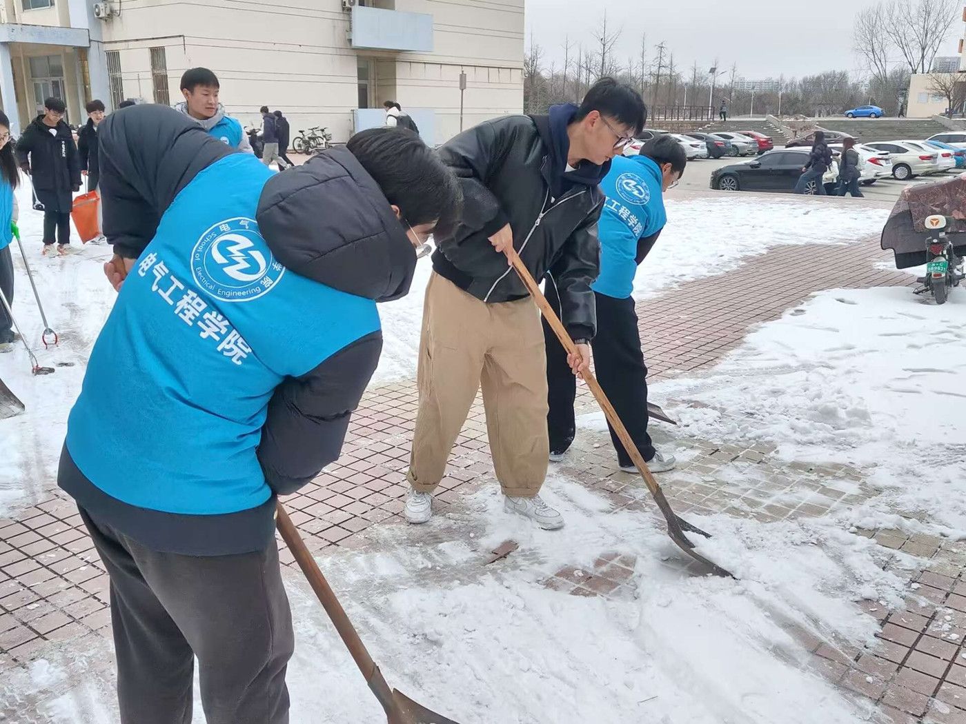 不到一个小时,电气馆主要出入口和通行道路的积雪便被清理得干干净净,一条条“安全通道”清晰可见。看着来来往往的同学们能够放心地大步走过,志愿者们拍了拍身上的雪渍,脸上洋溢着满足的笑容。