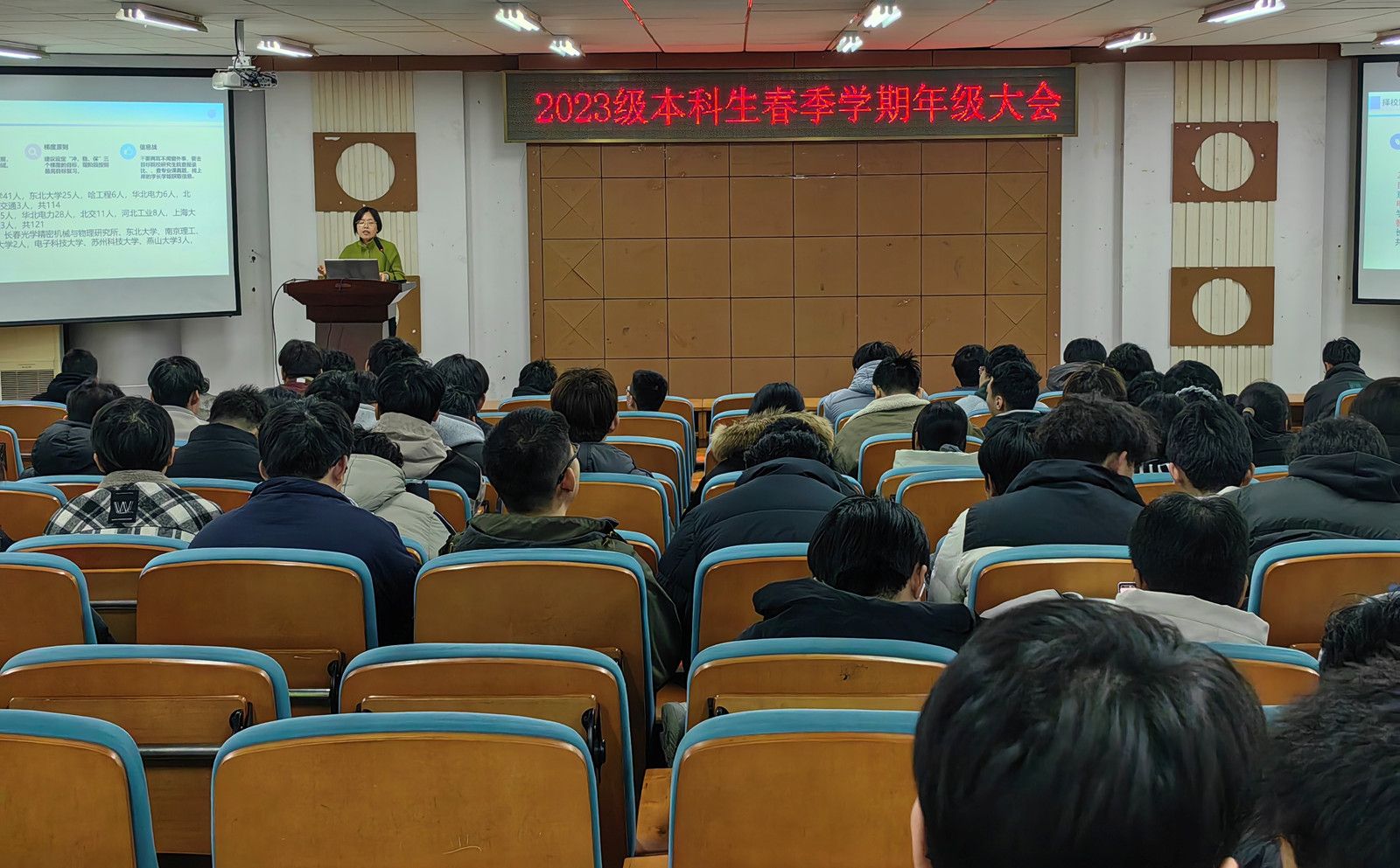 为引导2023级本科生科学规划未来发展,明晰奋斗目标,电气工程学院于3月11日至3月16日面向2023级本科10个专业召开年级大会,本次大会的主题是“岔路口的选择与启程——升学、电网与就业全解析”。辅导员郝亚琴、罗志高两位老师围绕大三下学期这一关键节点,为同学们系统分析了考研深造、国家电网应聘及直接就业三条主要发展路径的现状与准备策略。