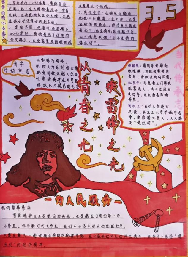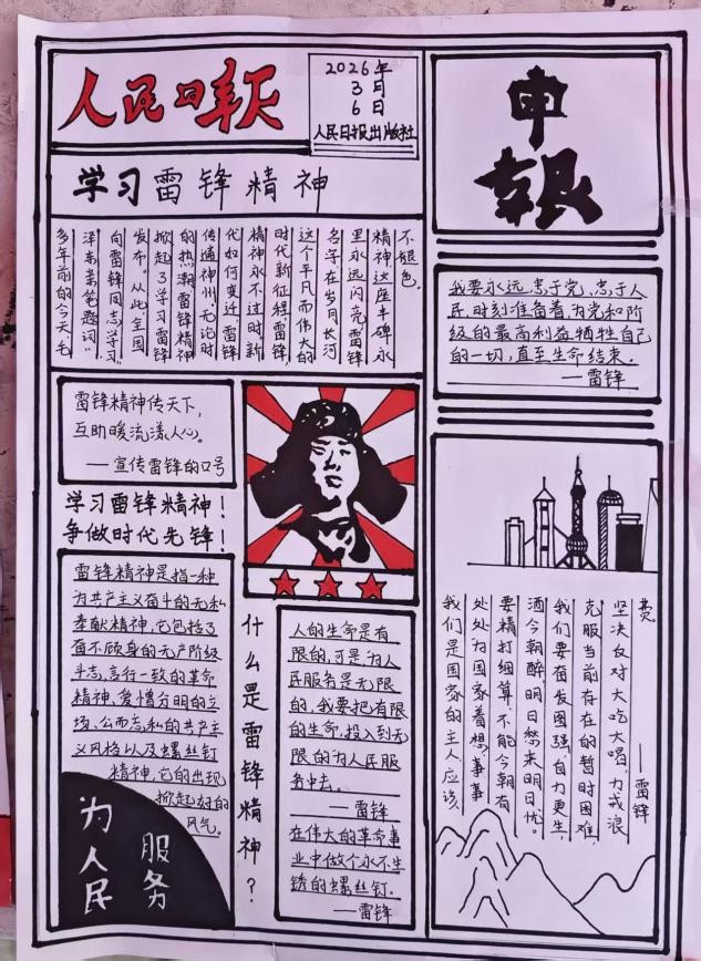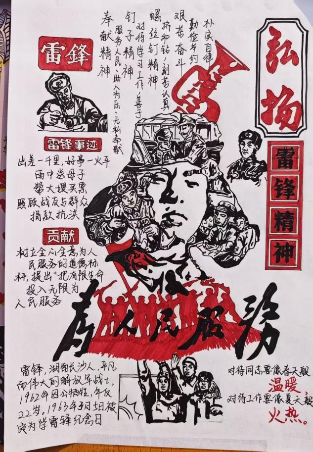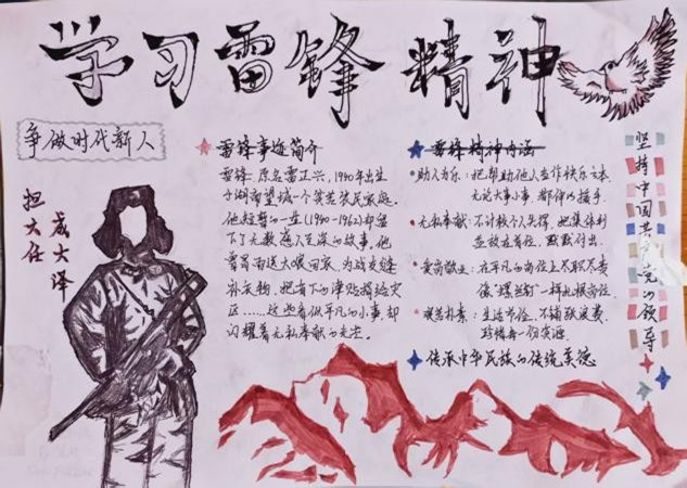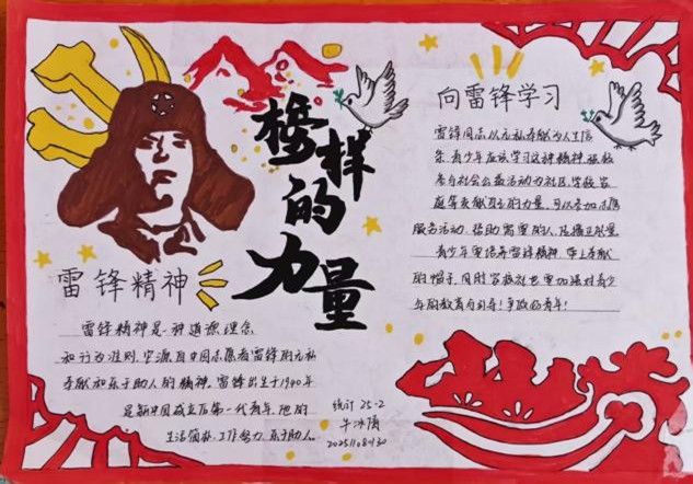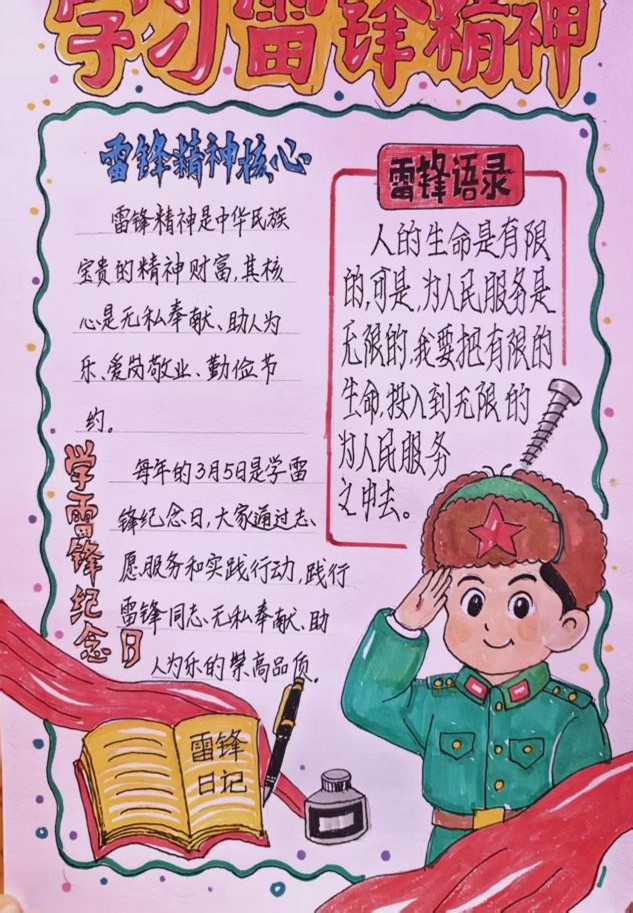 此次学习雷锋精神手抄报比赛的顺利举办,进一步激发了同学们的责任意识,推动形成了“从身边小事做起、以行动践行精神”的氛围,让雷锋精神在新时代绽放出新光芒。
