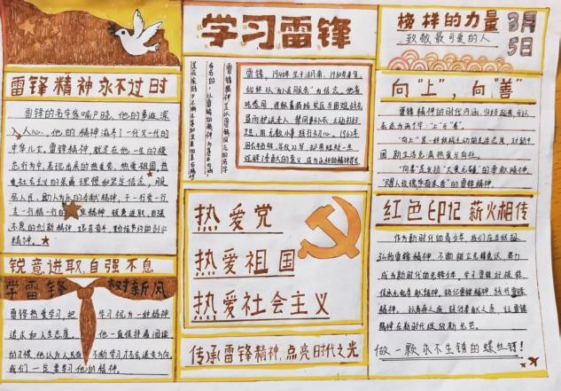 一幅幅精美的手抄报,不仅锻炼了学生的动手能力与审美水平,更让雷锋精神得以传承,营造了人人学雷锋、时时学雷锋、处处学雷锋的浓厚氛围。