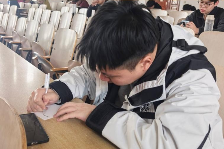 讲解结束后,党支部入党积极分子代表为24级测控专业的同学们送上了提前手写的心理健康主题祝福贺卡。作为本次朋辈心理指导活动的核心环节,支部党员们结合自身专业学习与成长经历,围绕自我接纳、焦虑缓解、学业规划、情绪管理等主题,写下专属暖心寄语。一字一句间,既有直面成长困惑的温柔劝慰,也有贴合专业的实用建议,更有来自学长学姐的真诚鼓励,让每一张贺卡都成为一份专属的“心灵治愈礼”,现场送到每一位同学手中。
