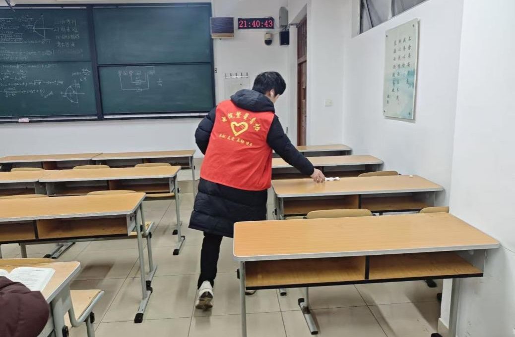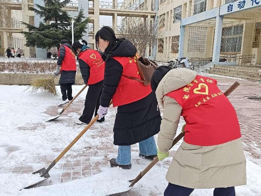 校园清扫行动同步开展,提前招募的志愿者们分组前往教学楼、电气楼和八组团楼前,细致地清扫地面积雪,打扫教室垃圾,擦拭电气A楼门口展板和八组团门口的荣誉墙。此次校园清扫活动不仅为燕大学子提供了干净整洁的学习环境,也用实际行动诠释了“奉献、友爱、互助、进步”的志愿精神。