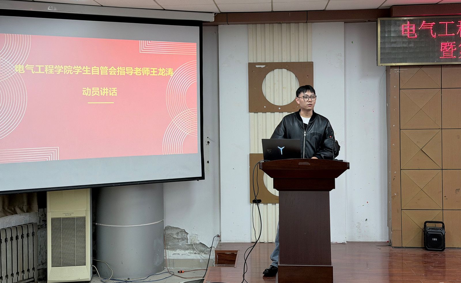 随后,自管会指导老师王龙涛作动员讲话。他充分肯定了自管会上一阶段在服务同学、促进社区治理、营造优良学风等方面发挥的积极作用,并对新学期的学生社区工作提出希望。他强调,自管会成员要进一步增强责任意识与服务意识,积极发挥桥梁纽带作用,推动形成共建共治共享的社区治理格局。讲话最后,王龙涛宣布电气工程学院第三届社区文化节正式开幕。