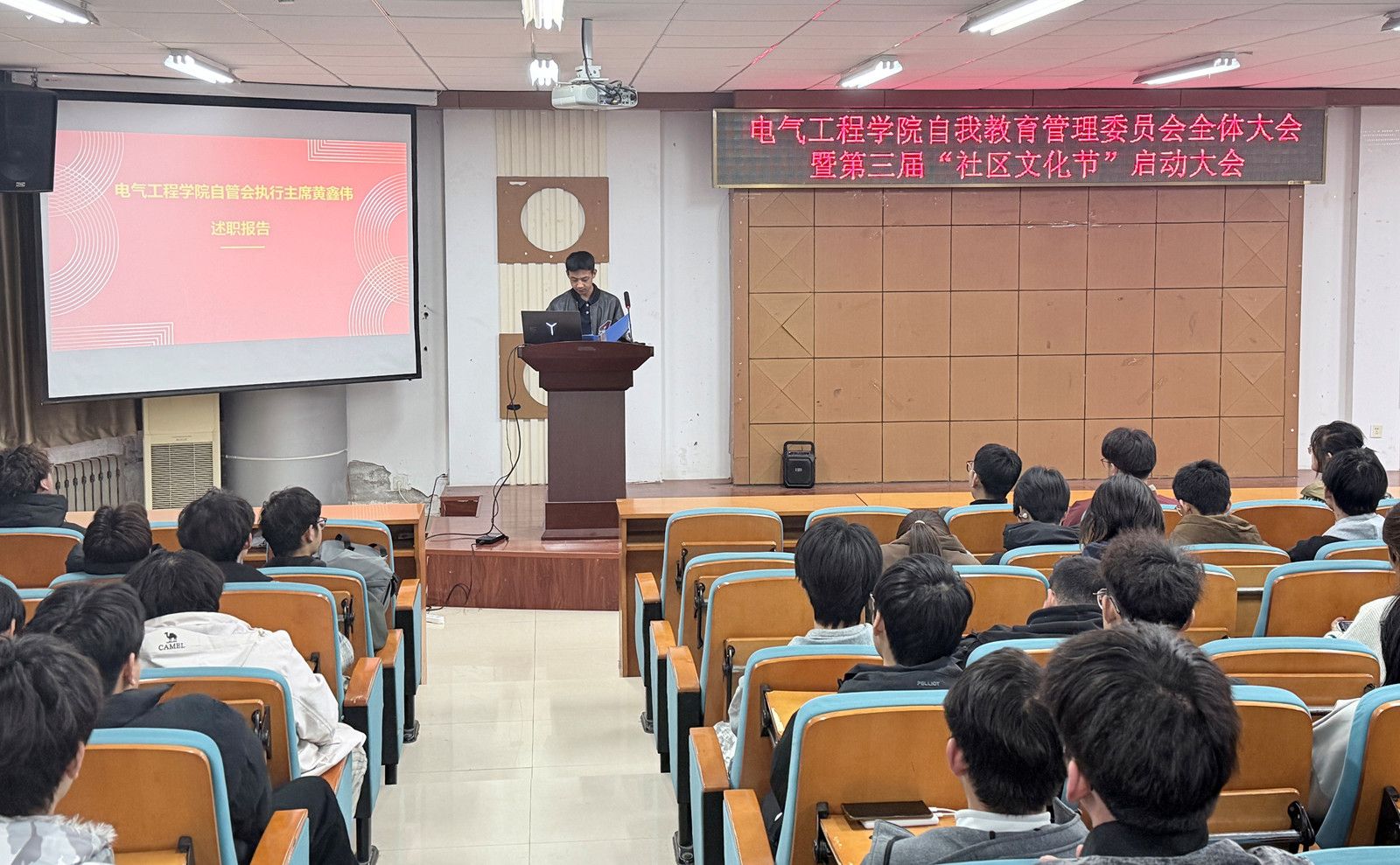 为进一步推进“一站式”学生社区建设,发挥学生组织在自我教育、自我管理、自我服务中的积极作用,丰富校园文化生活,电气工程学院于3月27日下午在电A101举行学生自我教育管理委员会(以下简称“自管会”)全体会议暨第三届社区文化节开幕式。学院自管会全体成员参加活动。