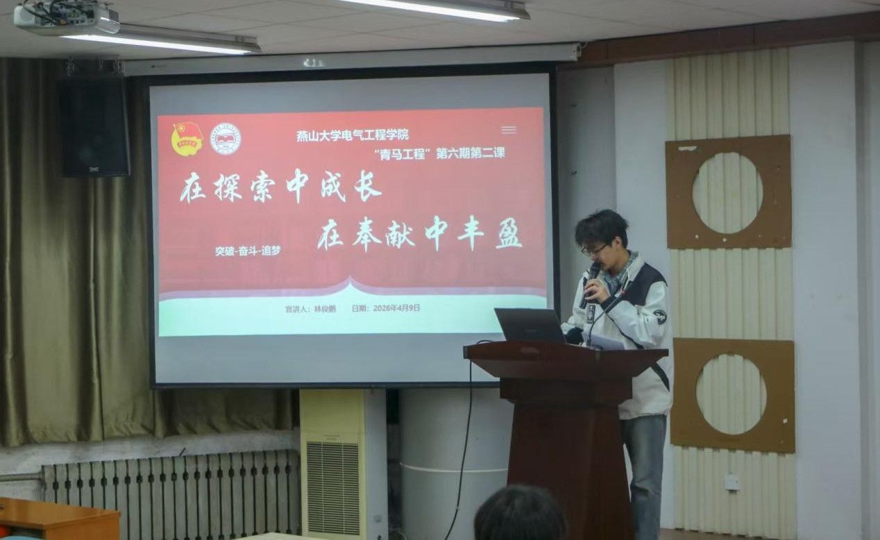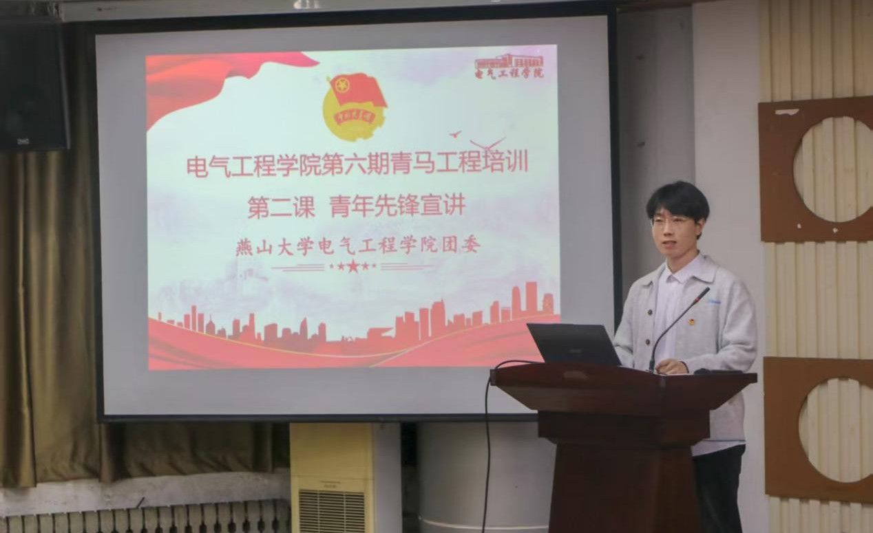为深入推进青年马克思主义者培养工程,进一步加强学生思想政治引领,激励青年学子以榜样为镜、向先锋看齐,2026年4月9日下午,燕山大学电气工程学院组织开展了第六期“青马工程”培训第二课——青年先锋宣讲,全体学员参与本次培训。
