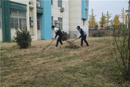 同学们清理草丛杂草(李宗阳摄) |  同学们清理卫生死角(郑晓宇摄) |  同学们清理校园落叶(李宗阳摄) |